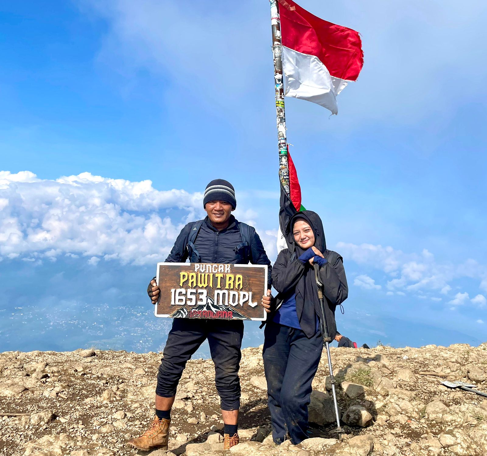 And yes, around 7:45 AM WIB, I stood on the Summit of Mount Penanggungan! The morning sun slowly pierced through the clouds, radiating an incredible warmth. In the distance, Mount Arjuno-Welirang looked majestic, and if you’re as lucky as I was, Mount Semeru also appeared faintly. The cold summit air felt refreshing in my lungs, but the warmth of the rising sun seemed to embrace me tightly. All the fatigue, all the sleepiness, all the cold melted away. This was a moment I’ll never forget.